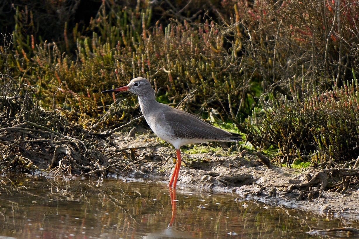 Ein eleganter Watvogel – rote Beine, flinke Bewegungen und ein perfekter Akrobat im Schlamm.